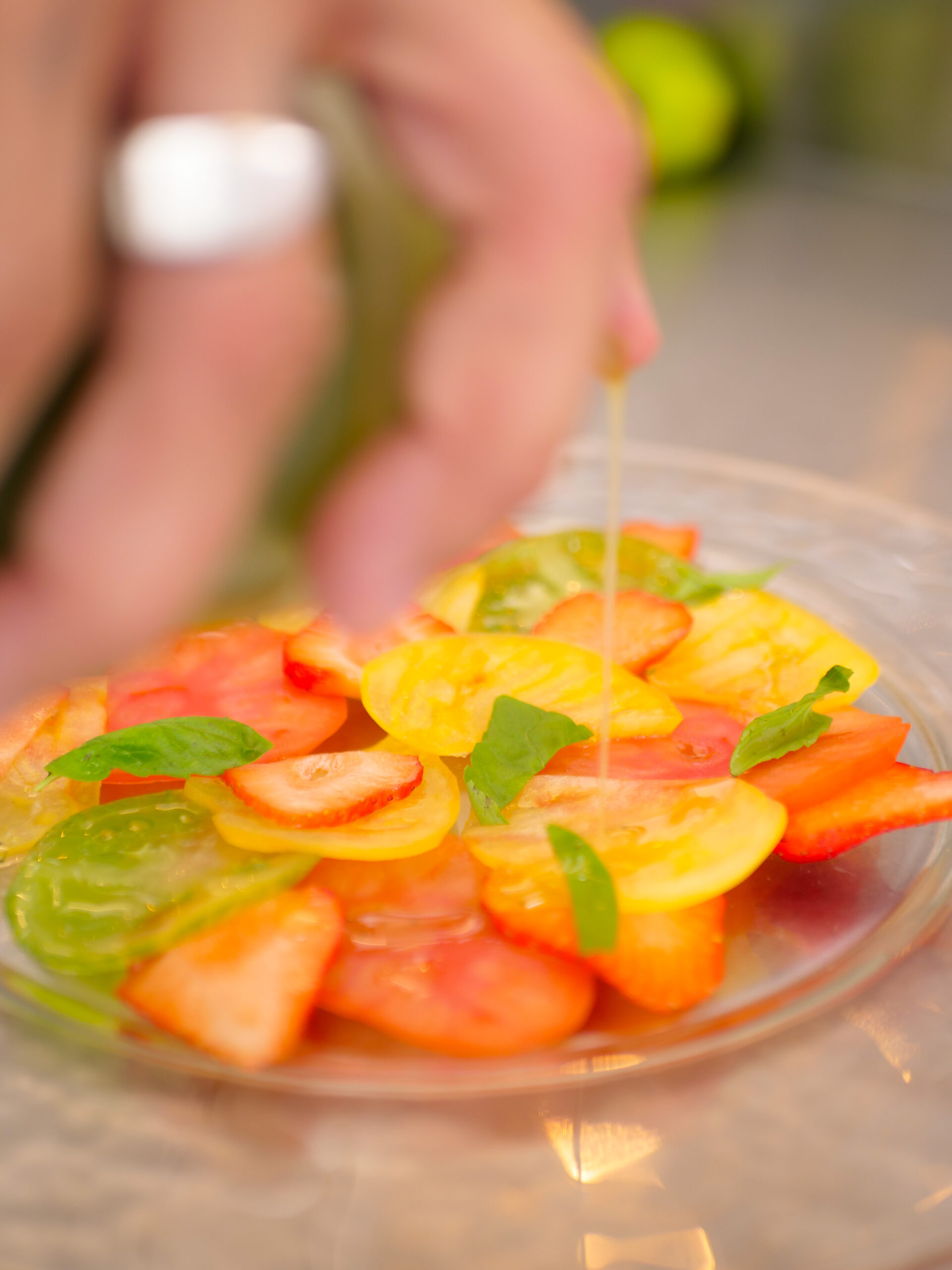 Camembert chaud Nappage de crème fraîche ciboulette tomates cerises